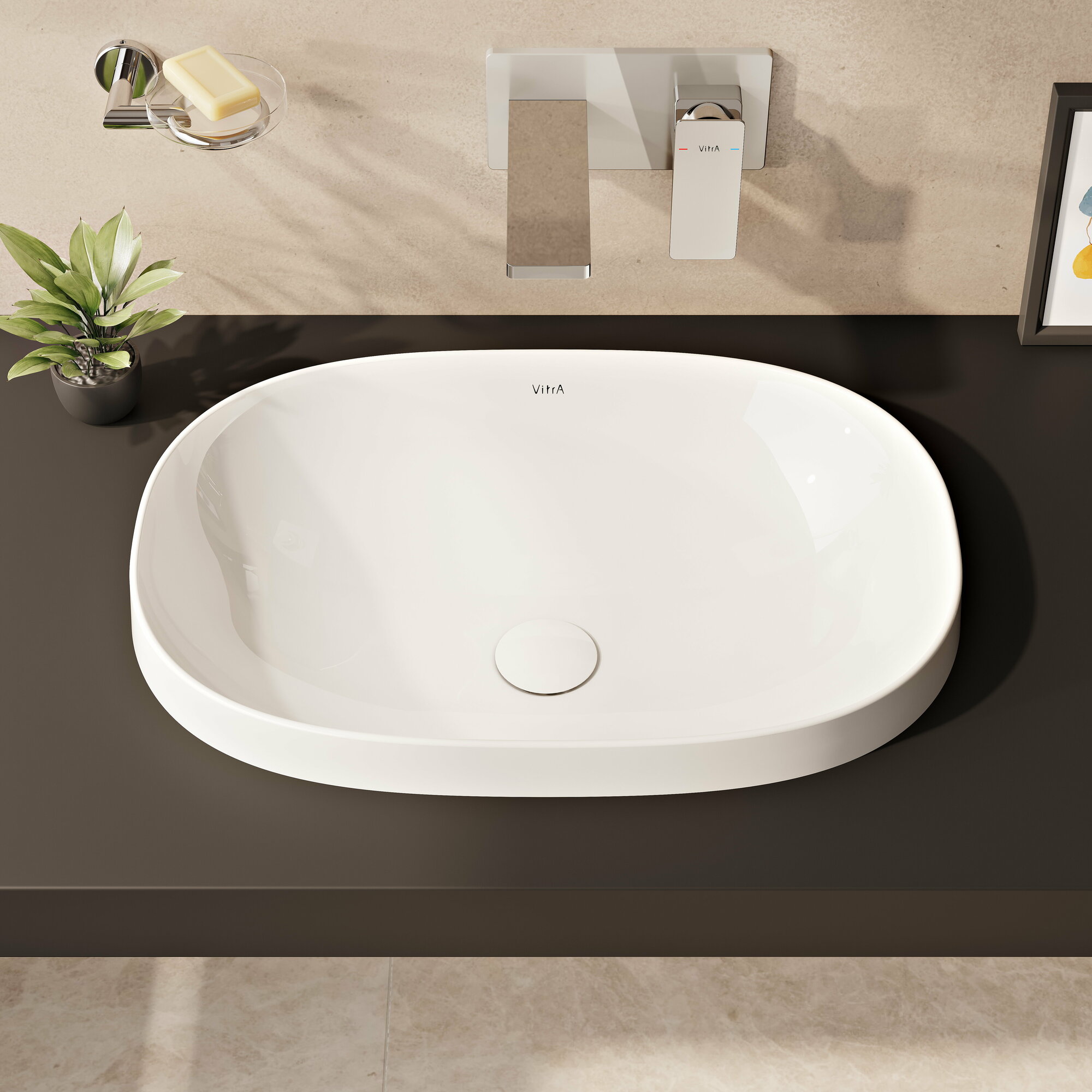 Раковина накладная Vitra Frame 560х390 без отверстия под смеситель, без перелива 5652B403-0016