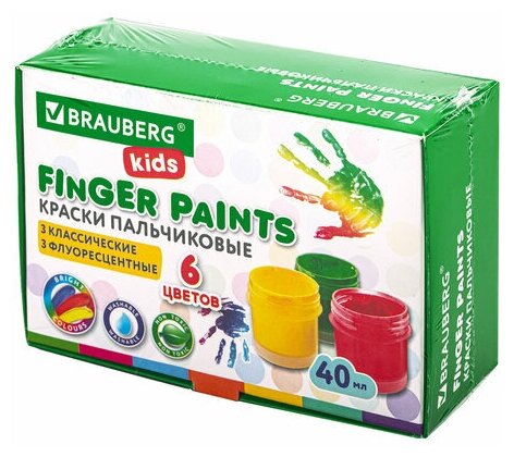 Краски пальчиковые для малышей от 1 года, 6 цветов (3 классических + 3 флуоресцентных) х 40 мл, BRAUBERG KIDS, 192279 Комплект - 3 шт.