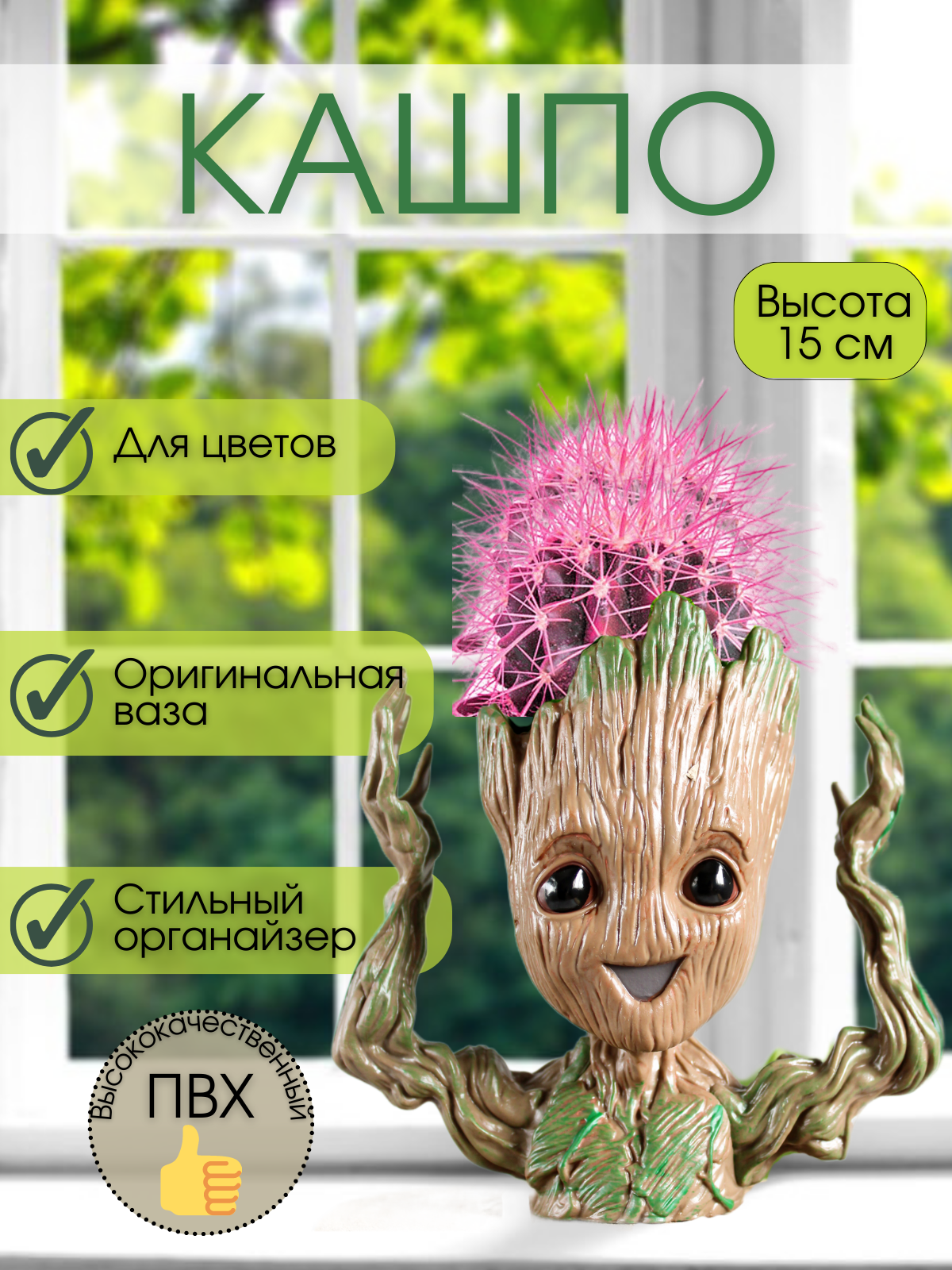 Декоративное кашпо для цветов, кактусов, суккулентов, Грут Марвел, пластиковое, ваза для конфет, копилка для денег информация: