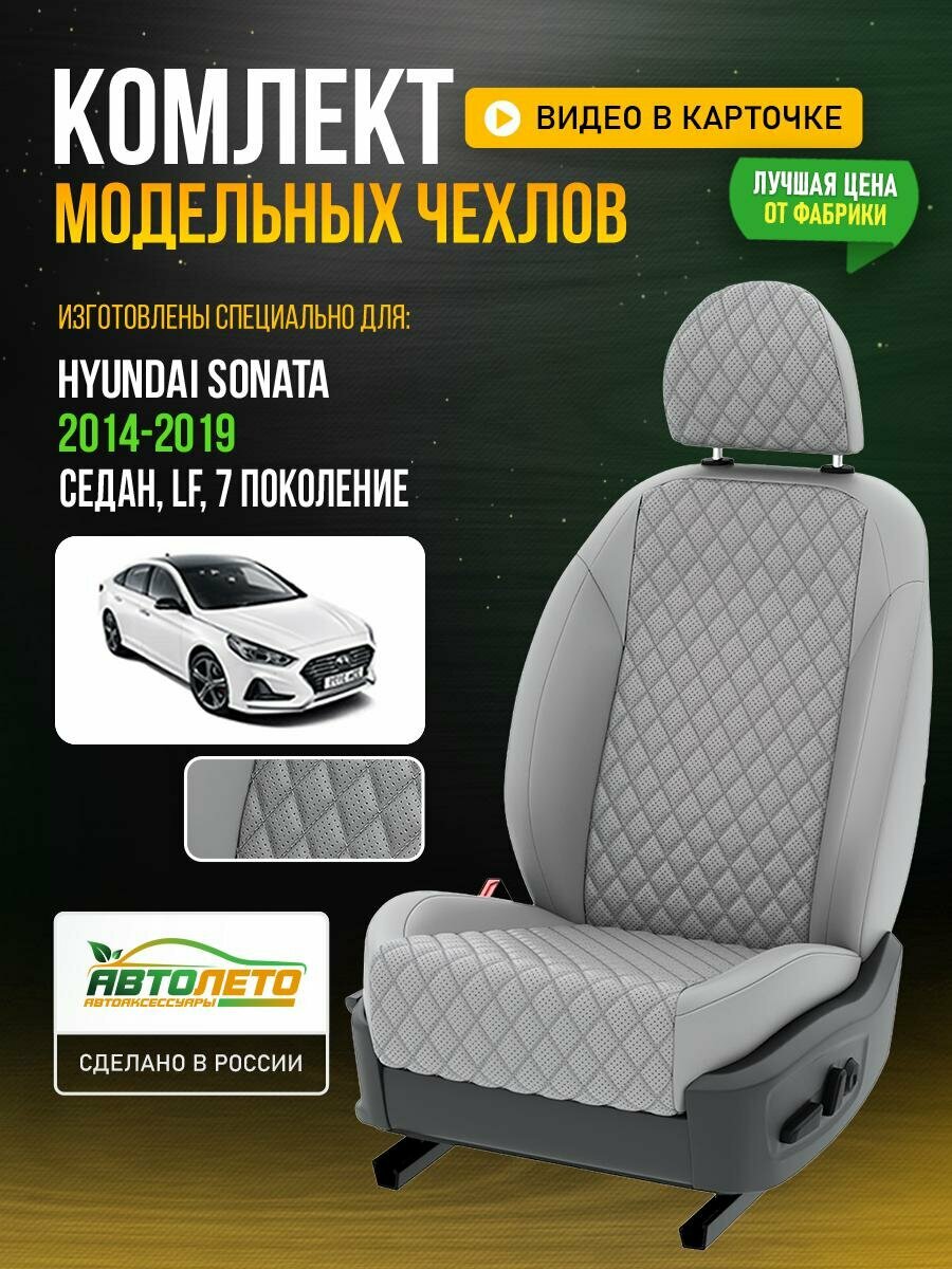 Отзывы на Чехлы для Hyundai Sonata 7 LF 1998-2019 Светло-Серый Светло-Серый Экокожа с ромбом Авто Лето LA674C92