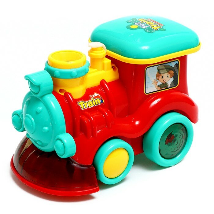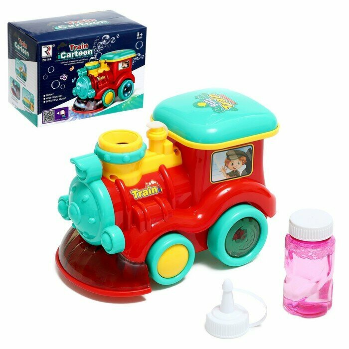 Поезд «Весёлый», на батарейках, с мыльными пузырями, свет и звук, цвет красный информация: