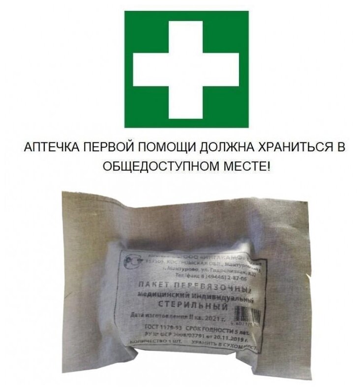 Комплект 30 штук, Пакет перевязочный индивидуальный ИПП-1 информация: