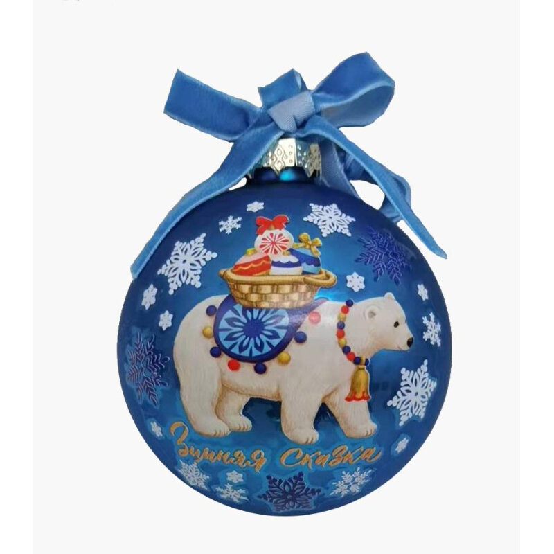 Отзывы на Комплект 30 штук, Новогоднее украшение подвесное из стекла Шар синий с медведем 8см арт.91845