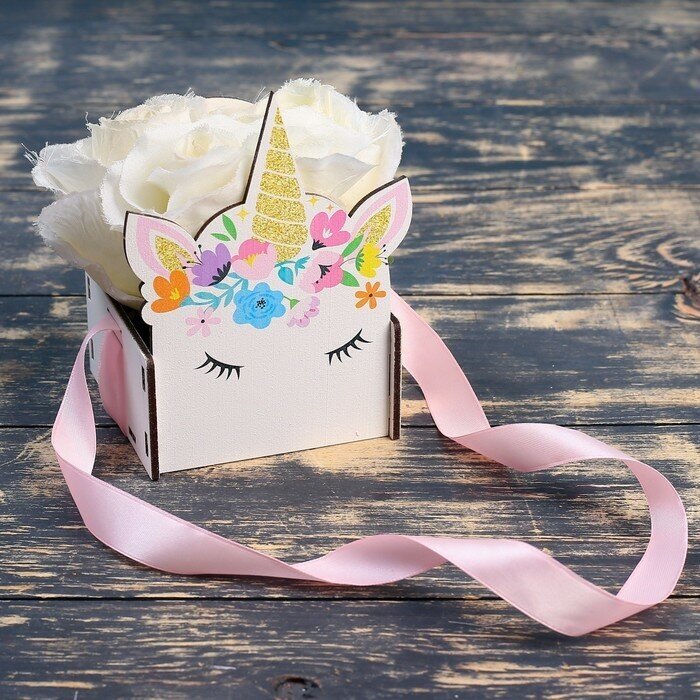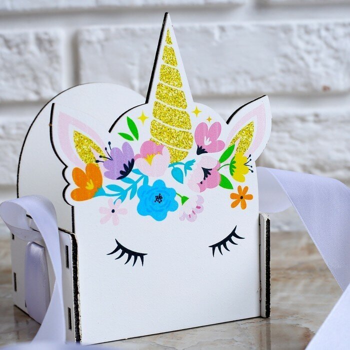 Отзывы на Кашпо деревянное 11×9.5×14.5 см уникальное "Конверт Единорог", ручка лента, с печатью