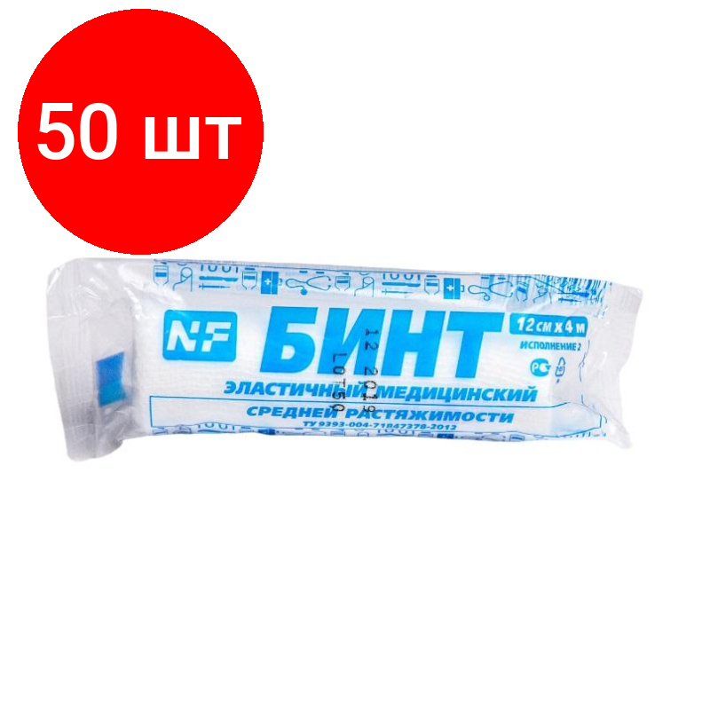 Комплект 50 штук, Бинт эластичный ср.раст., 12cм х 4м, Ньюфарм ШК 30487 информация: