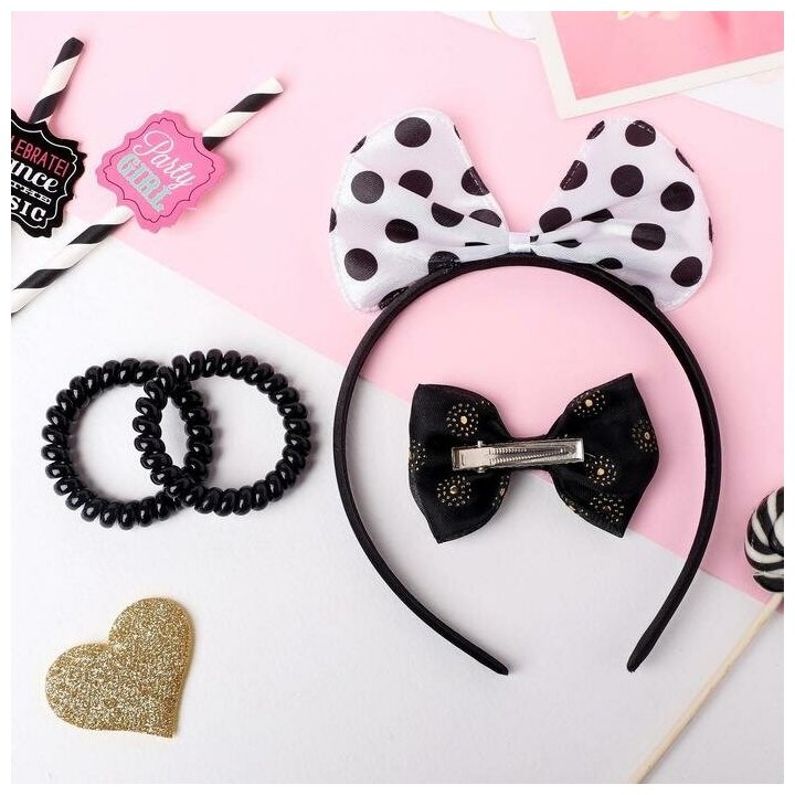 10 цен на Набор для волос Очаровашка (ободок, 2 резинки, зажим) чeрно-белый