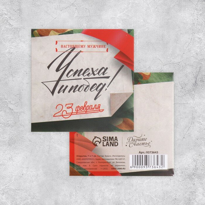 Открытка-мини «Успеха и побед!», камуфляж, 7 × 7см информация:
