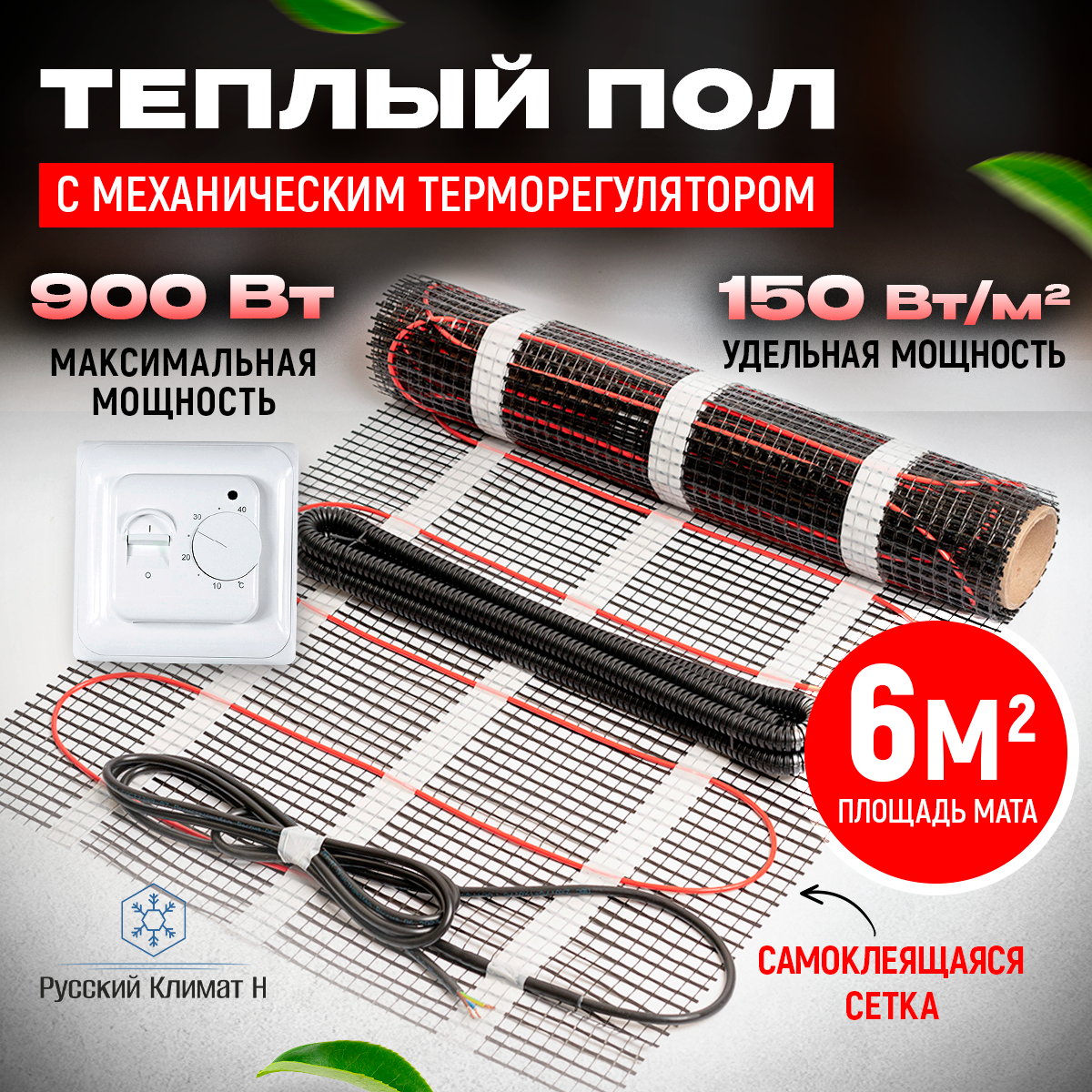 Теплый пол под плитку SHP 6 м2 c механическим терморегулятором информация: