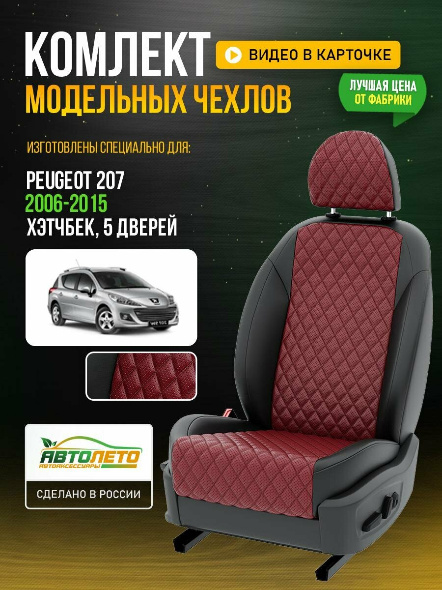 Отзывы на Чехлы для Peugeot 207 1 2006-2015 5 дверей Бордовый Черный Экокожа с ромбом и перфорацией Авто Лето LA423C98