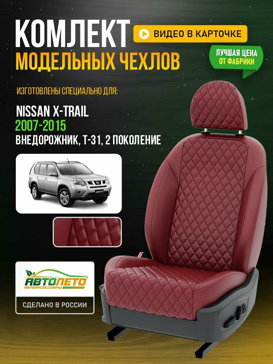 Чехлы для Nissan X-trail 2 T-31 2001-2019 Бордовый Бордовый Экокожа с ромбом и перфорацией Авто Лето LA452C83 информация: