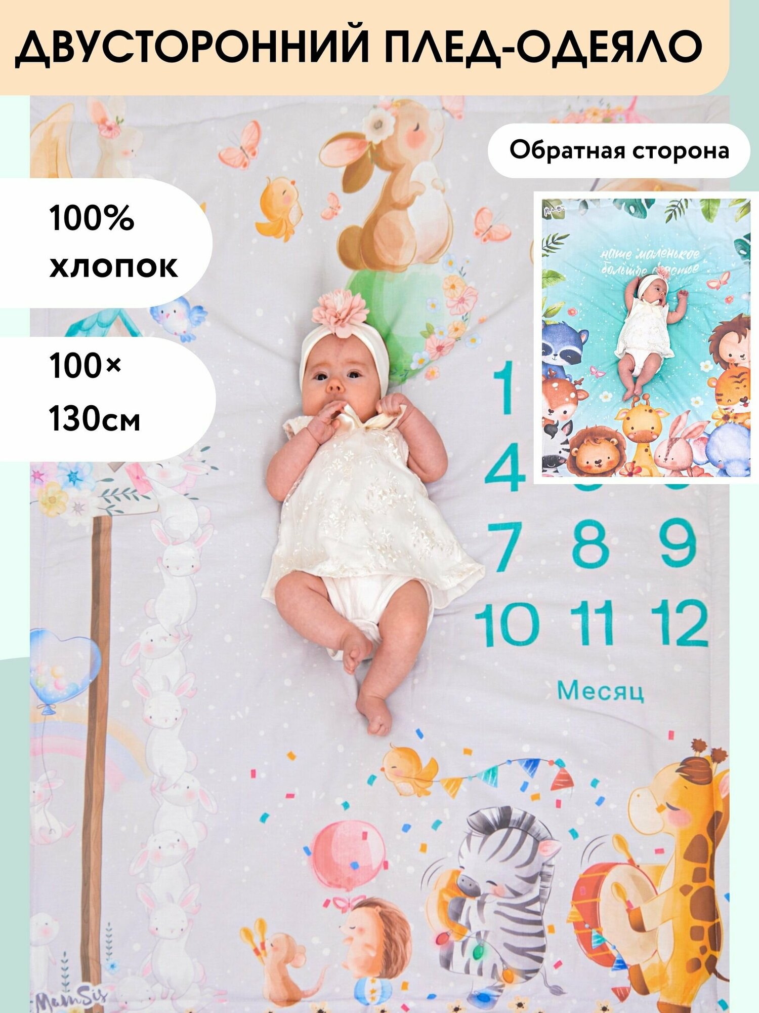 Плед для новорожденного, фотоплед MamSis 100x130см информация: