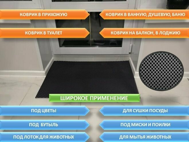 Отзывы на EVA коврик 110х75 см универсальный / серый / ромб / придверный / лоток для обуви / для сушки посуды / под миски и поилки / для велосипеда