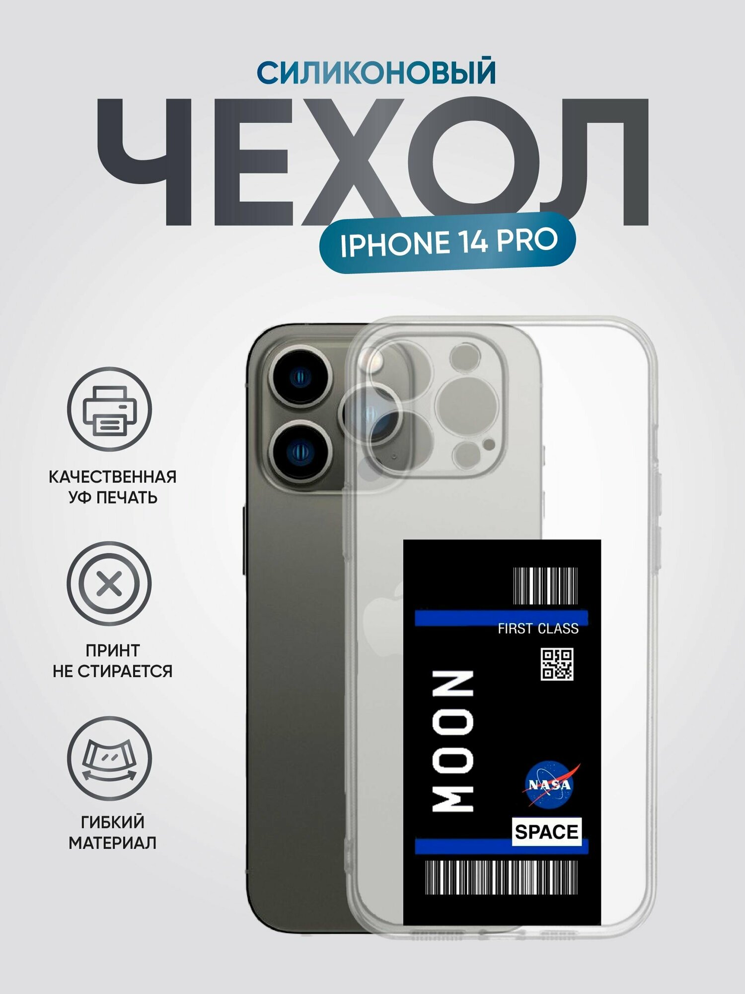 Чехол на Apple iPhone 14 Pro, с рисунком, Билет на луну информация: