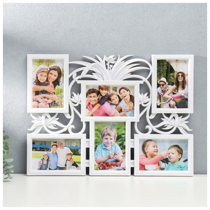 Отзывы на Фоторамка пластик на 6 фото 10х15 см "Африканская лилия" белый 36х49 см