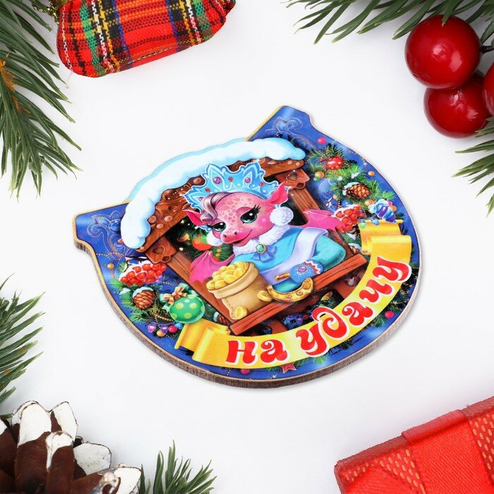 Магнит новогодний подкова "Символ года 2024. На удачу" информация: