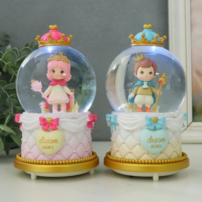 10 цен на Сувенир полистоун водяной шар музыка, свет "Принц/Принцесса" микс 15х8,5х8,5 см