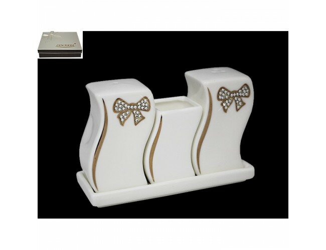10 цен на Набор для специй : солонка и перечница 2х40 мл. с емкостью для зубочисток на подставке в подарочной упаковке фарфор
