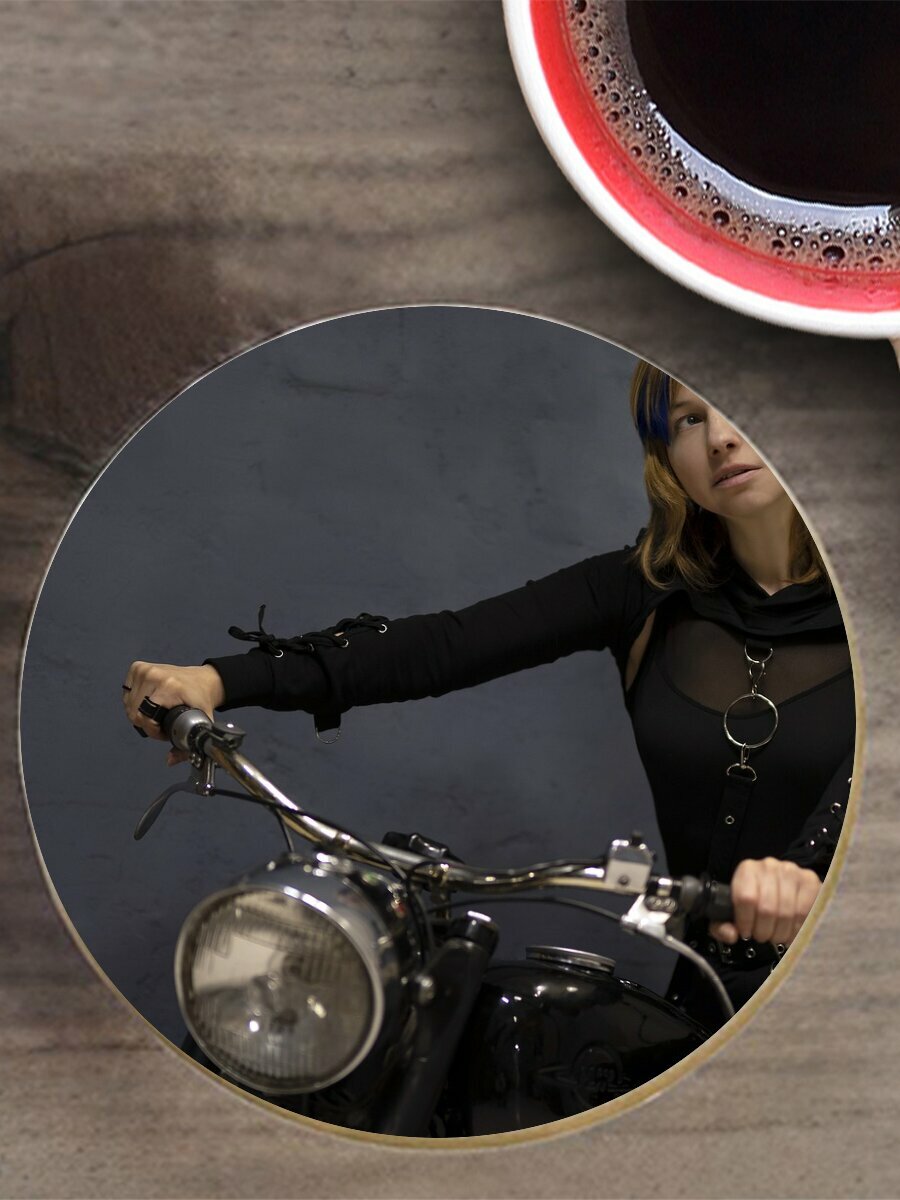 Отзывы на Подставка под горячее "Девушка с мотоциклом, девушка на мотоцикле, мотоцикл" 10 см. из блого мрамора