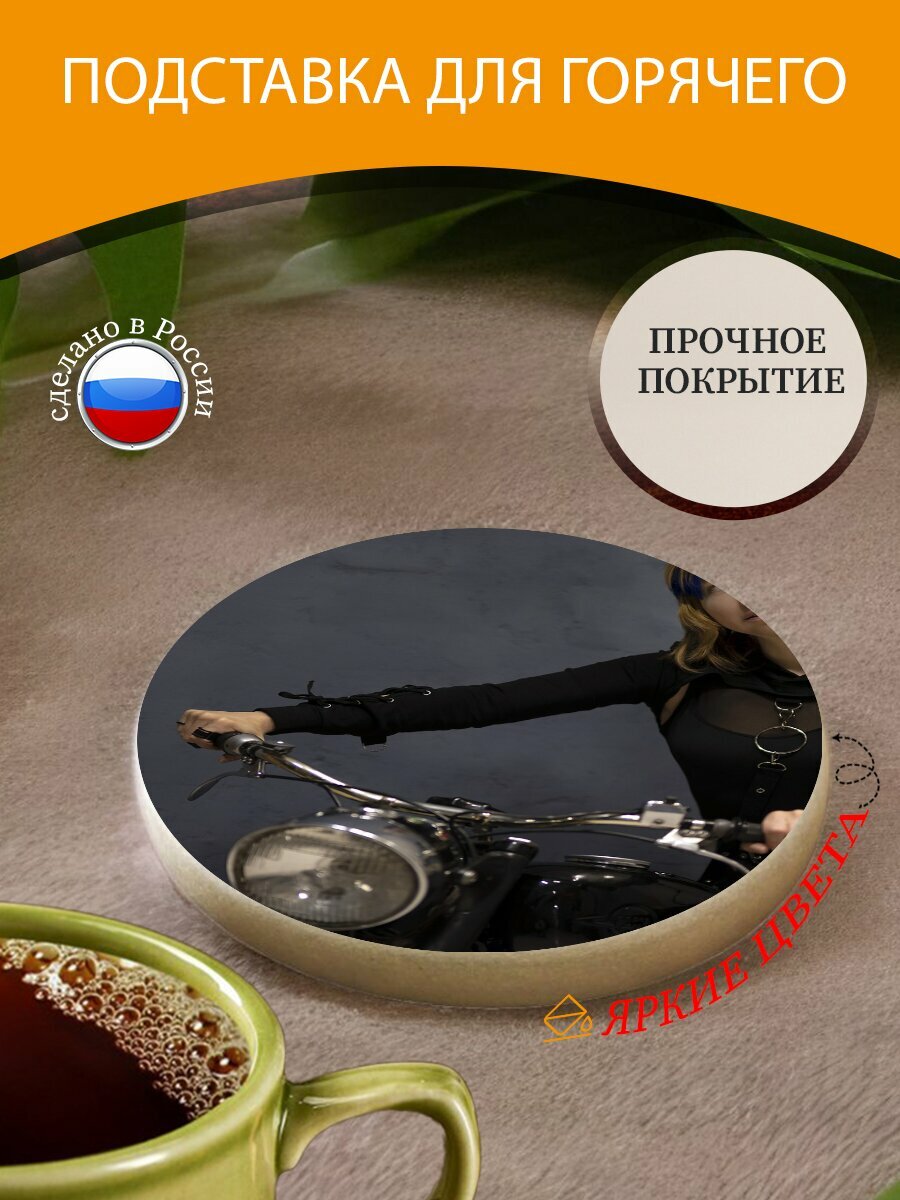 Подставка под горячее "Девушка с мотоциклом, девушка на мотоцикле, мотоцикл" 10 см. из блого мрамора информация:
