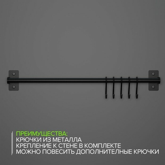 Рейлинговая система для кухни, 57 см, 5 крючков, цвет чёрный информация: