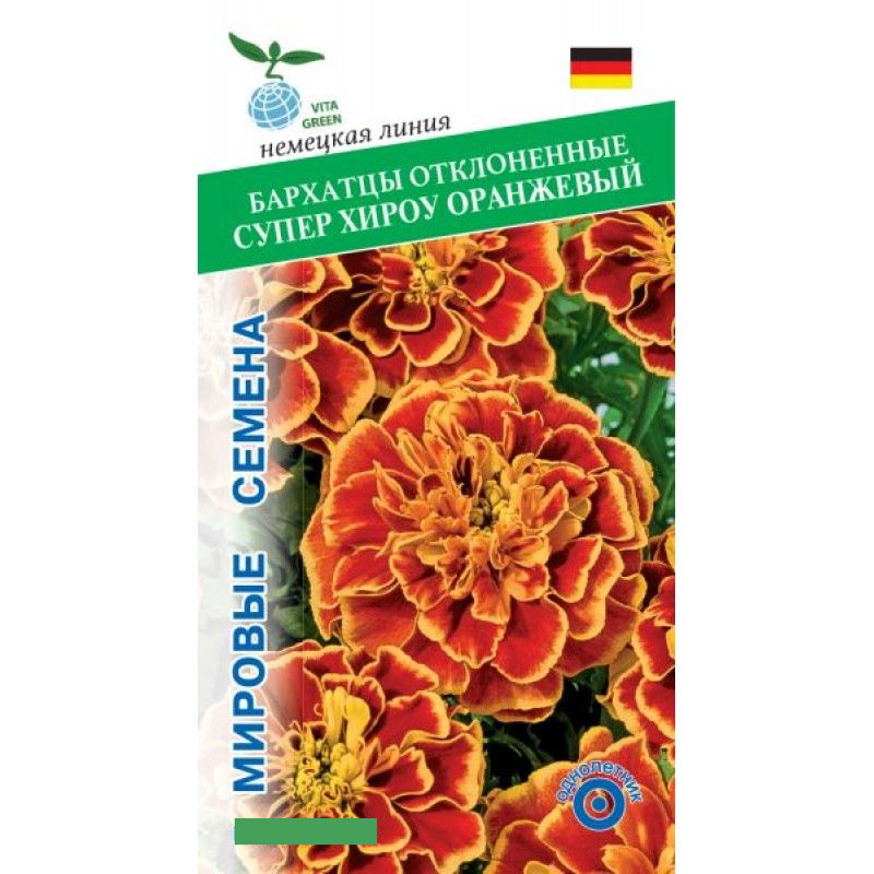 10 цен на Бархатцы отклонённые Супер Хироу, Оранжевый, 10 семян, VITA GREEN