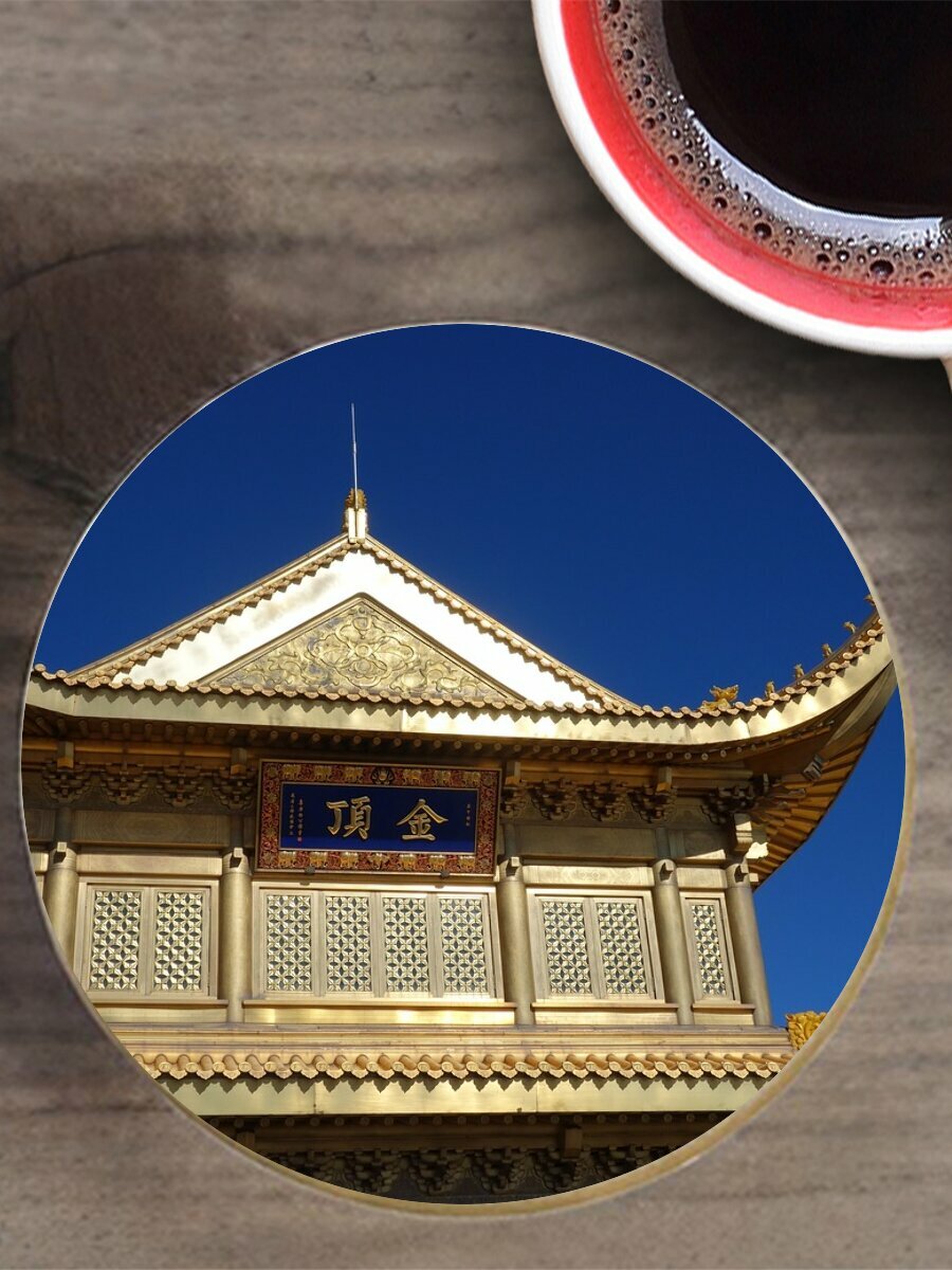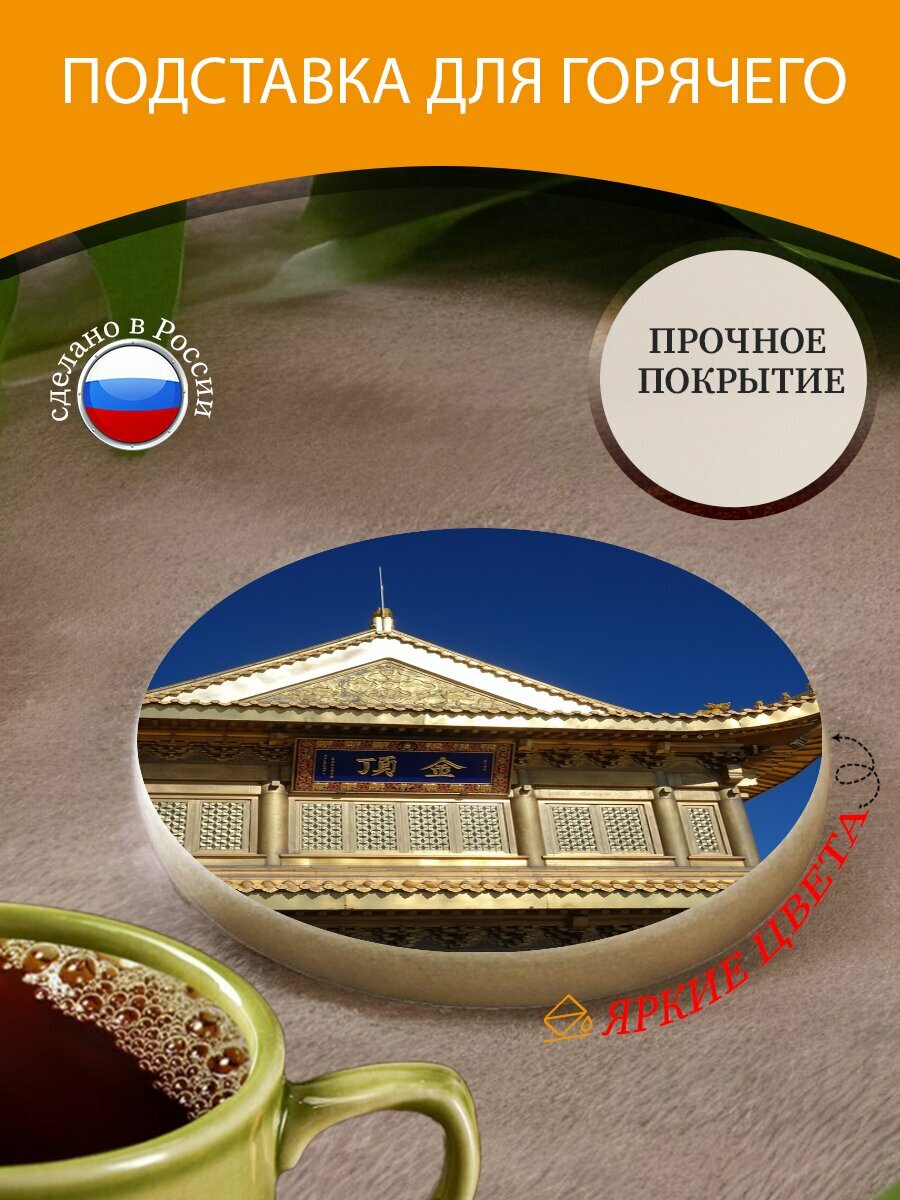 Подставка под горячее "Золотая вершина, гора эмэй, посмотреть" 10 см. из блого мрамора информация: