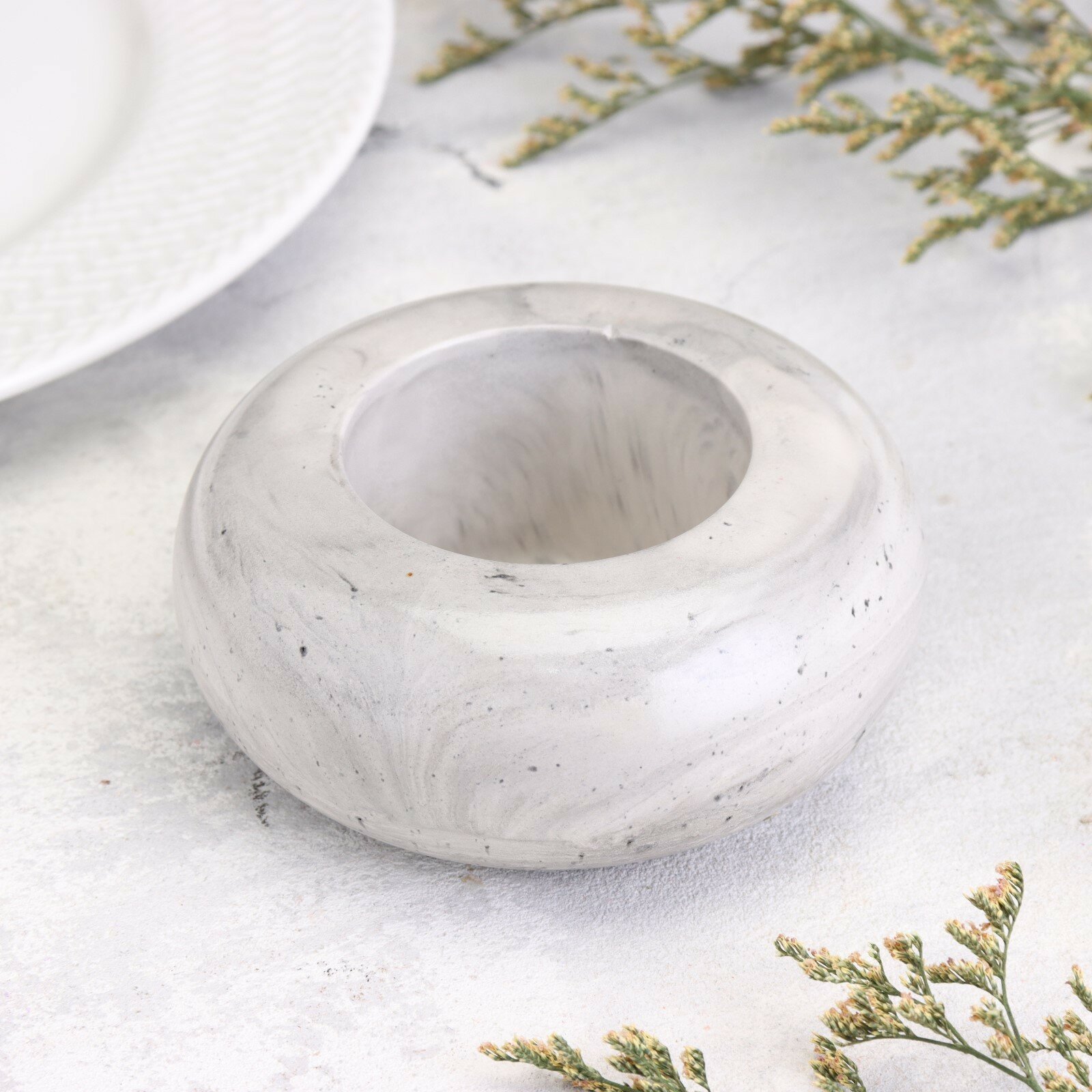 10 цен на Подсвечник "Полноторие. Мрамор" из гипса большой, 11х5см,мрамор с чёрными полосками