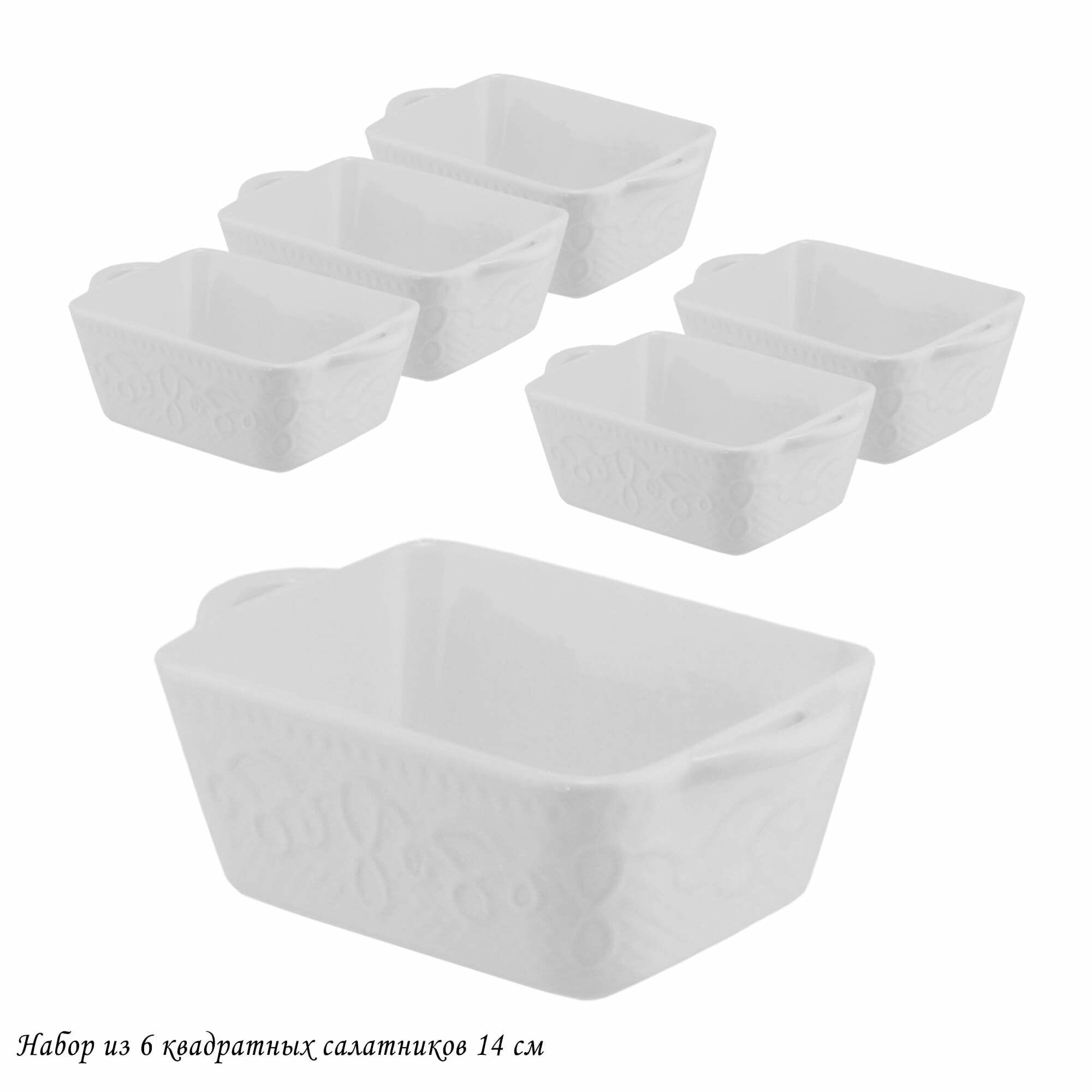 10 цен на Набор 6 штук Салатник квадратный Lenardi 14см, фарфор