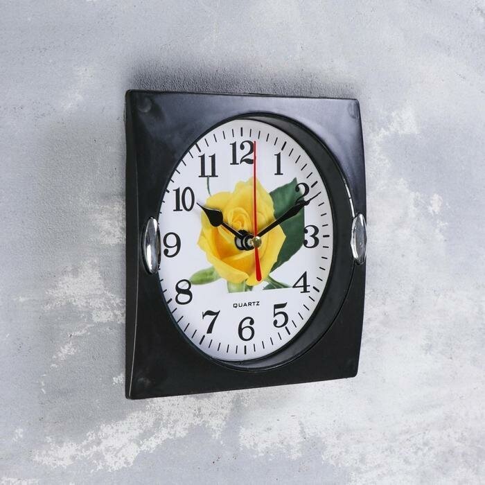 10 цен на Часы настенные, серия: Цветы, "Роза жёлтая", дискретный ход, 15 х 15 см, d-13 см