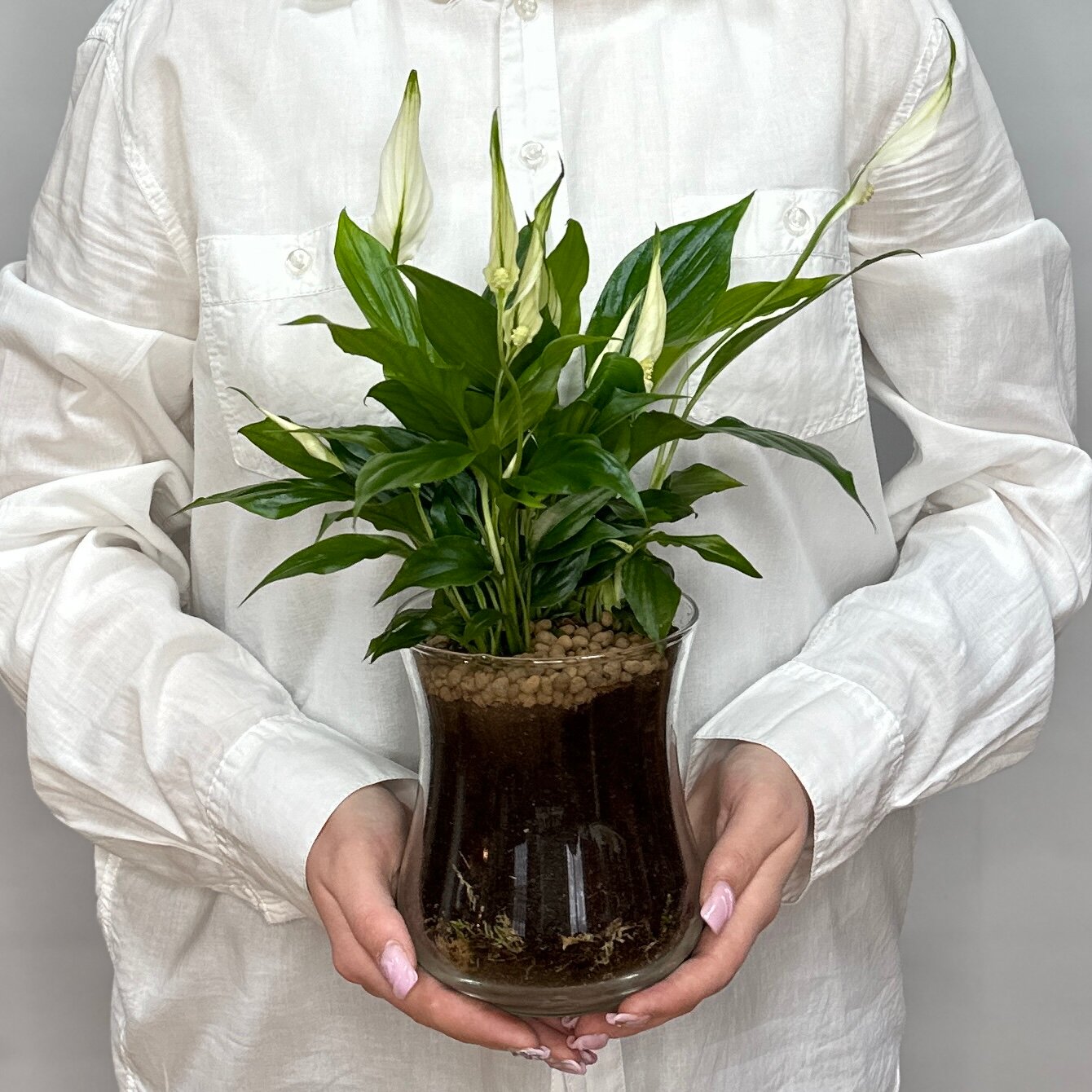 10 цен на Спатифиллум (женское счастье) в стеклянной вазе