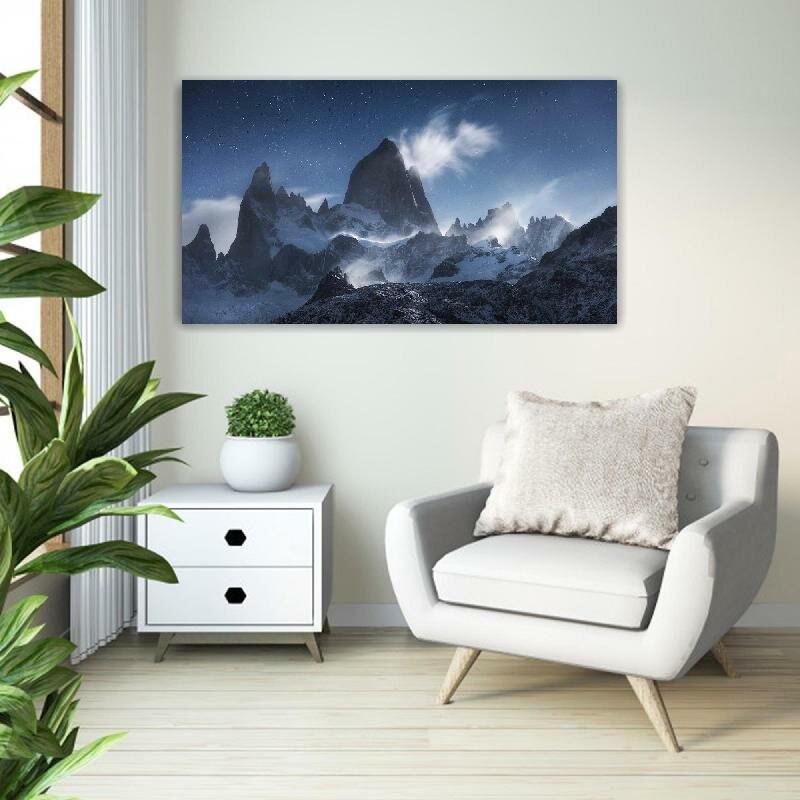 Картина на холсте 60x110 LinxOne "Горы снег Фицрой by Даниил" интерьерная для дома / на стену / на кухню / с подрамником информация: