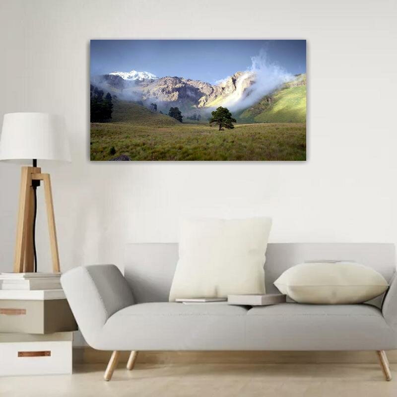 Картина на холсте 60x110 LinxOne "Долина дерево пейзаж горы" интерьерная для дома / на стену / на кухню / с подрамником информация: