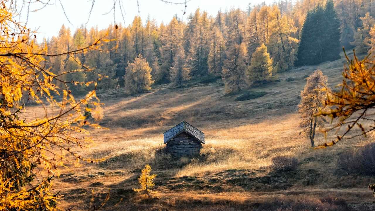 Картина на холсте 60x110 LinxOne "Природа осень домик" интерьерная для дома / на стену / на кухню / с подрамником информация: