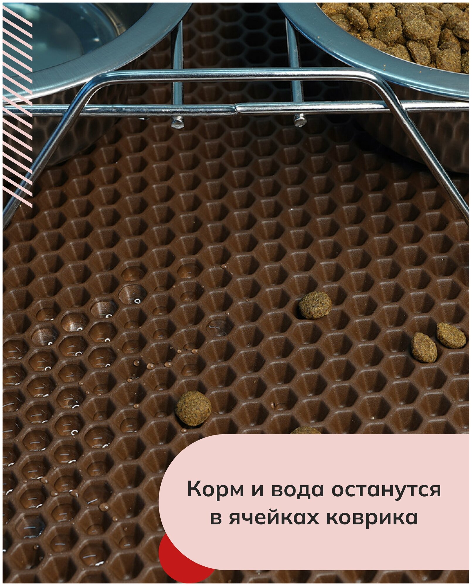 10 цен на Плотный, износостойкий коврик для животных под миску 60 х 80 см, коричневый с ячеистой структурой из безопасных материалов