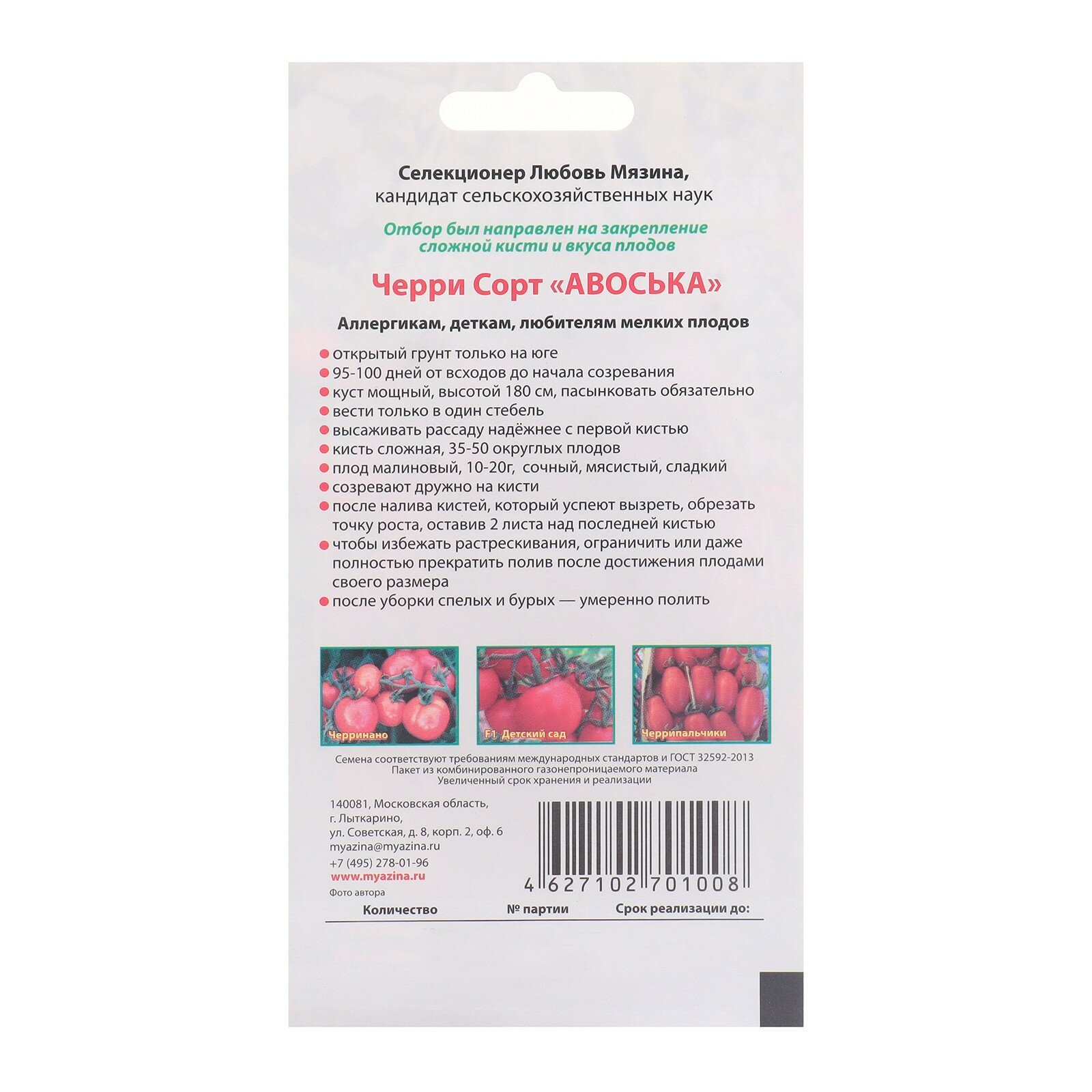Семена Томат "Авоська", 10 шт информация: