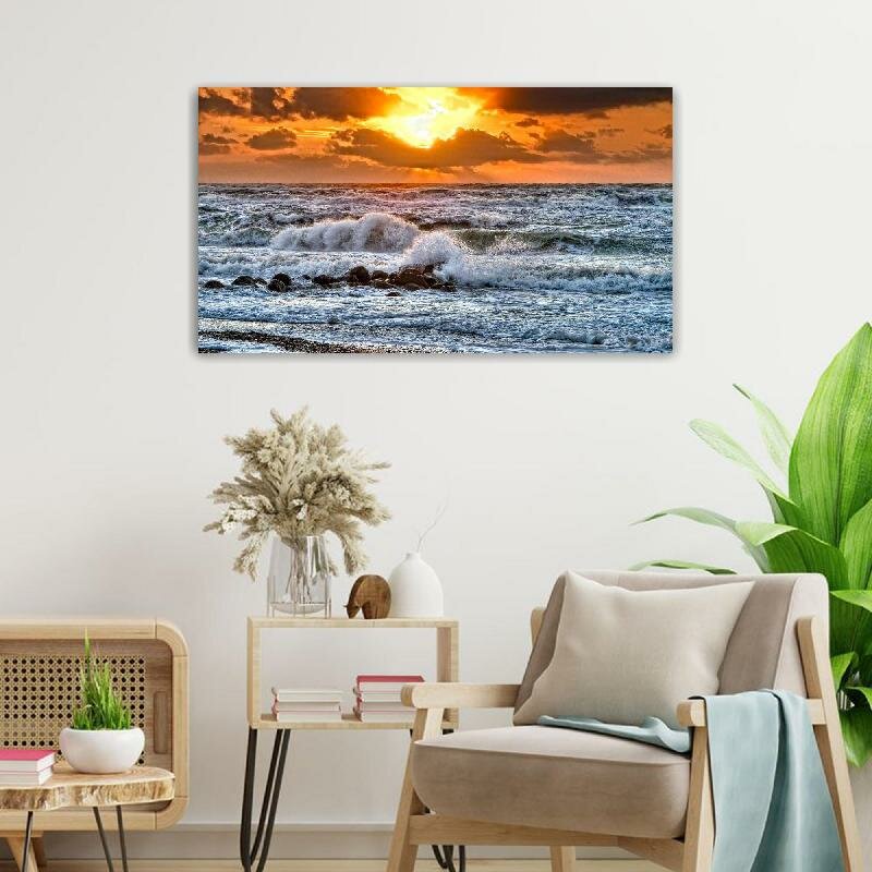 Картина на холсте 60x110 LinxOne "Закат море пейзаж волны" интерьерная для дома / на стену / на кухню / с подрамником информация: