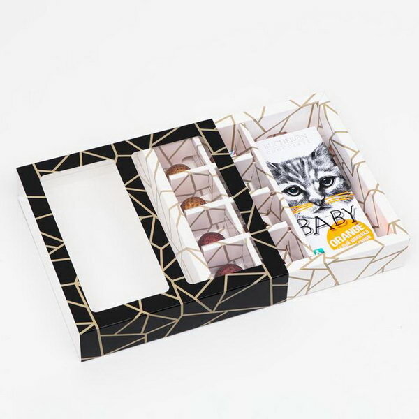 Отзывы на Коробка под 8 конфет + шоколад, с окном, геометрия, черно-белая, 17.7 x 17.85 x 3.85 см, 5 шт.