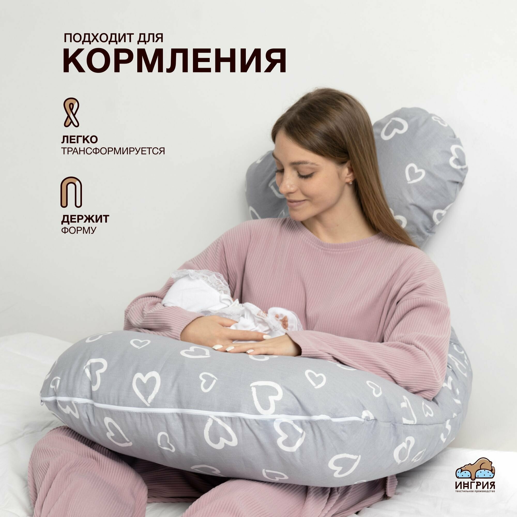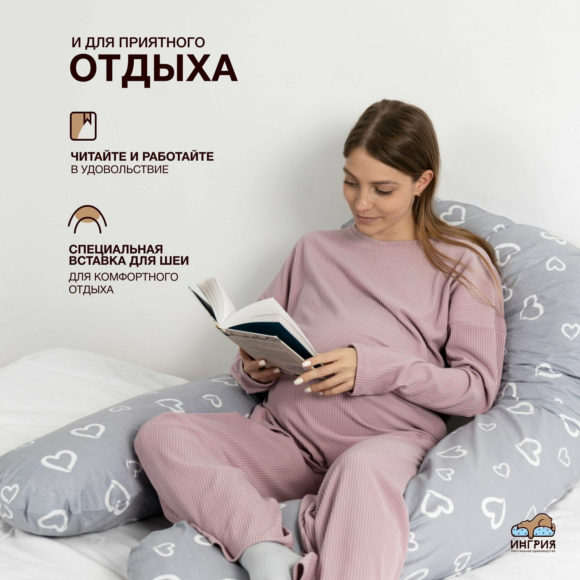 10 цен на Подушка для беременных и кормящих, U-Lite, 60x130, Сердечки серая