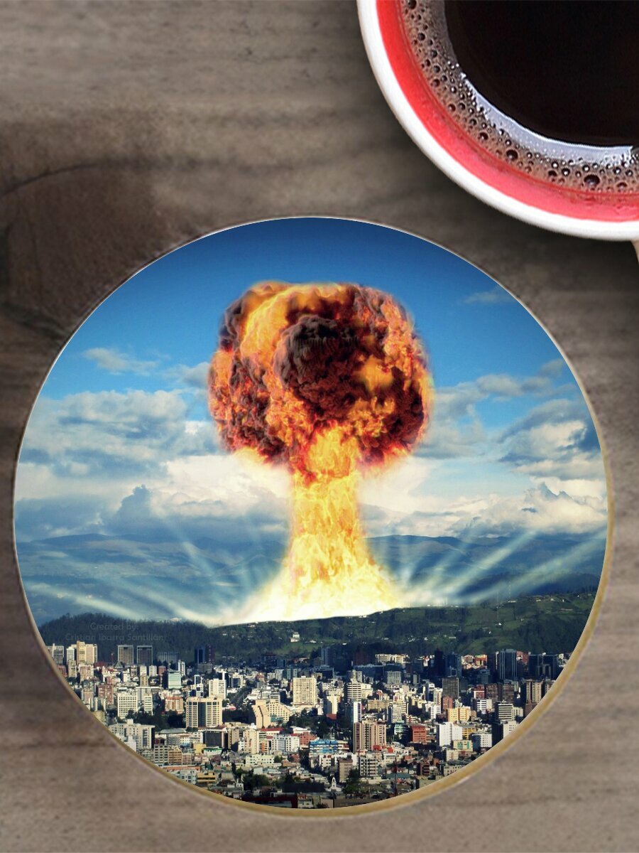 10 цен на Подставка под горячее "Ядерный, ядерный взрыв, апокалипсис" 10 см. из блого мрамора