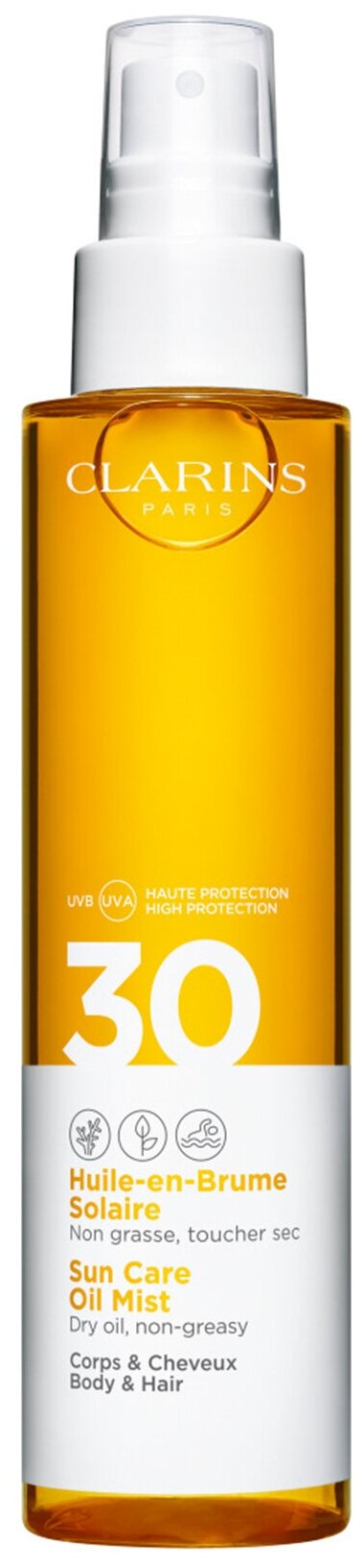 10 цен на Cолнцезащитное масло-спрей для тела и волос Clarins Huile-en-Brume Solaire SPF 30 /150 мл/гр.