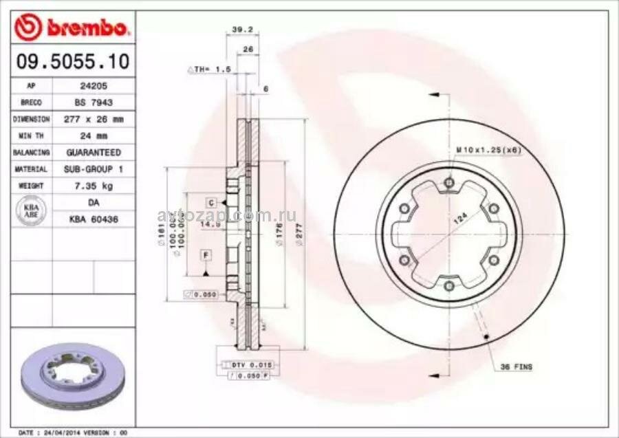 BREMBO 09505510 Диск тормозной Standard | перед | информация: