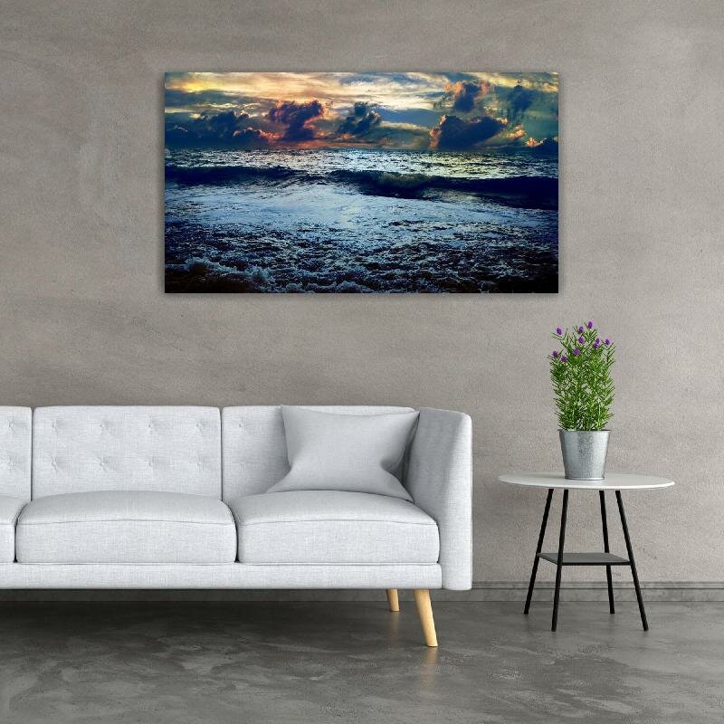 Картина на холсте 60x110 LinxOne "Волна закат море облака" интерьерная для дома / на стену / на кухню / с подрамником информация: