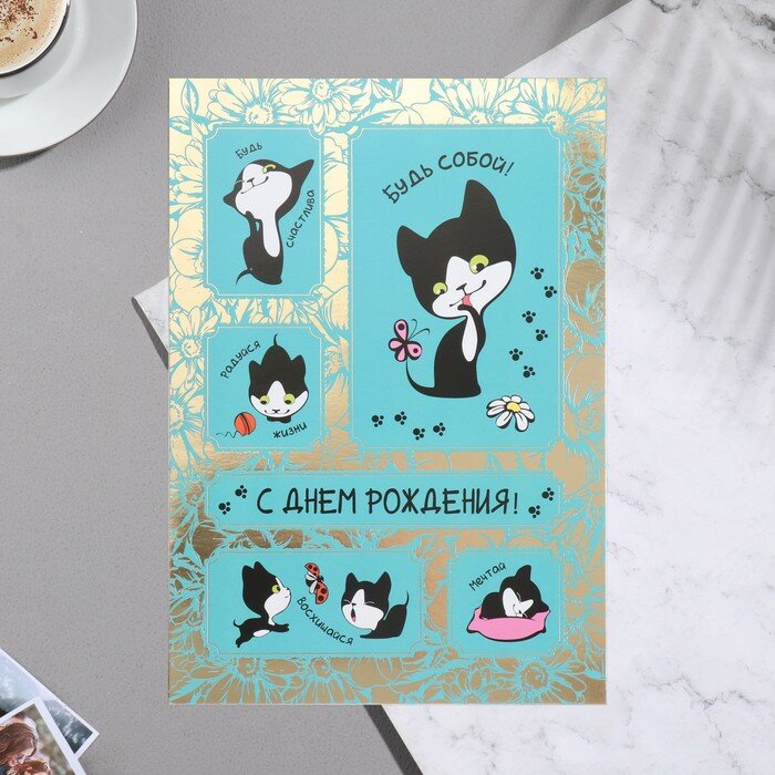10 цен на Открытка "С Днём Рождения" котик, А4