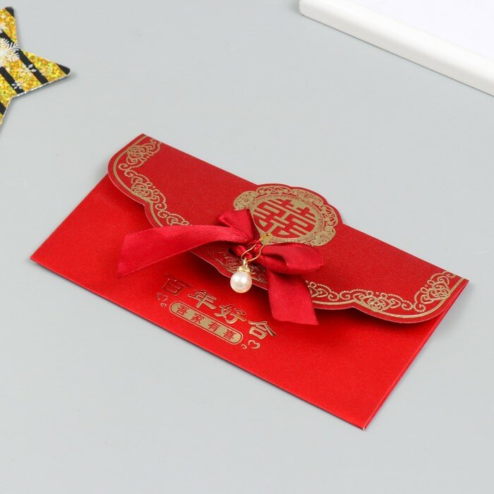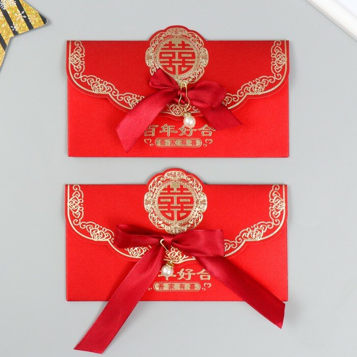 10 цен на Конверт денежный красный с золотом "С лентой и бусинами" набор 2 шт 9,5х18 см