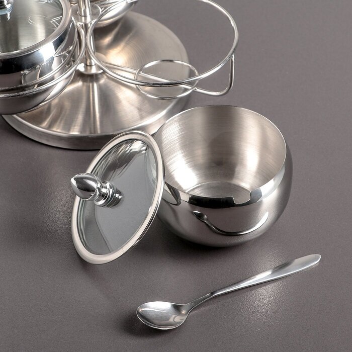 10 цен на Набор сахарниц, 3 шт, 19×14 см, на крутящейся подставке с ложками
