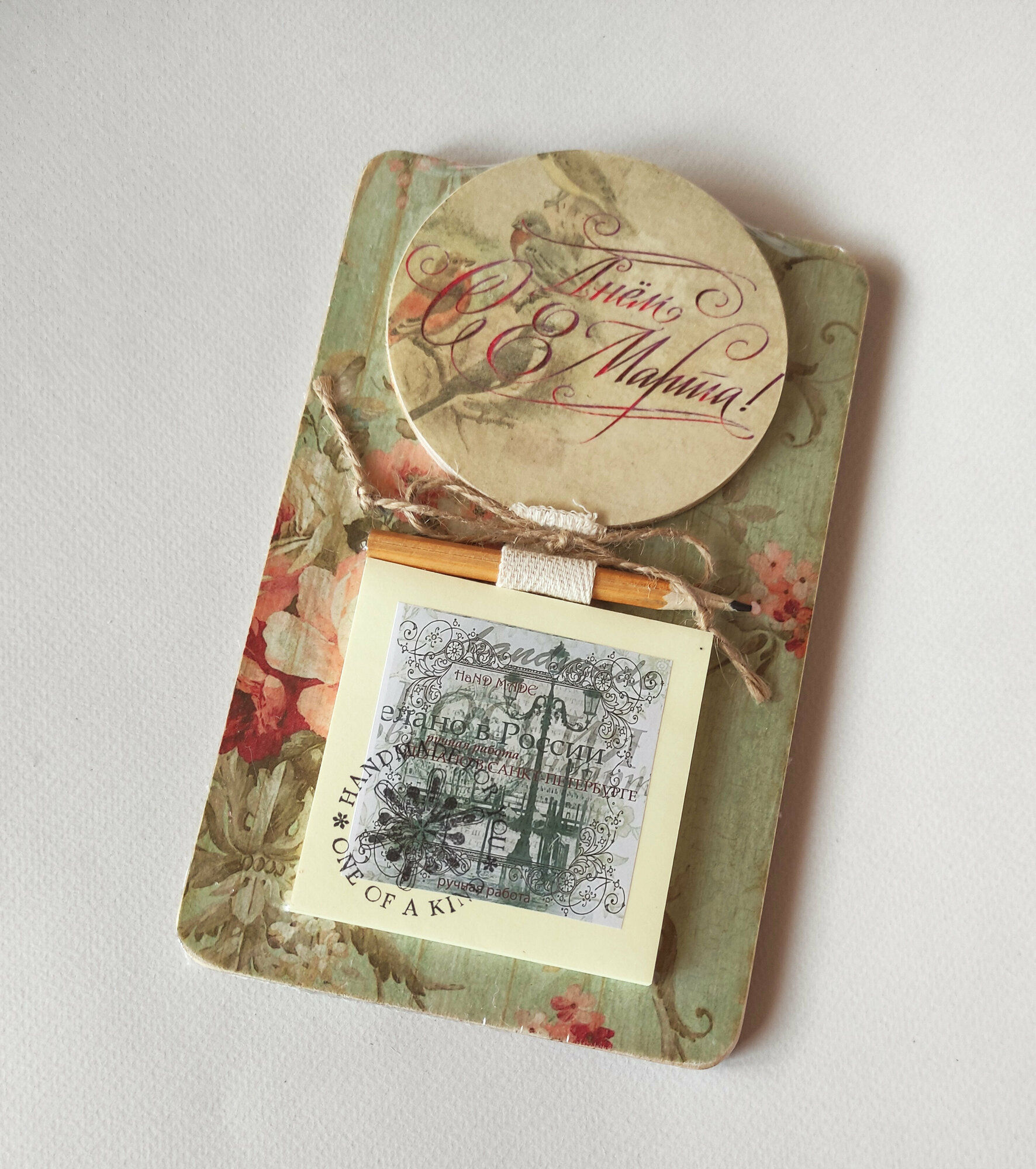 Магнит на холодильник деревянный ручная работа с блоком для записей 8 Марта 03525 информация: