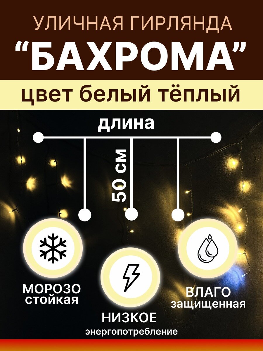Гирлянда-бахрома уличная 200 диодов 6м теплая белая информация: