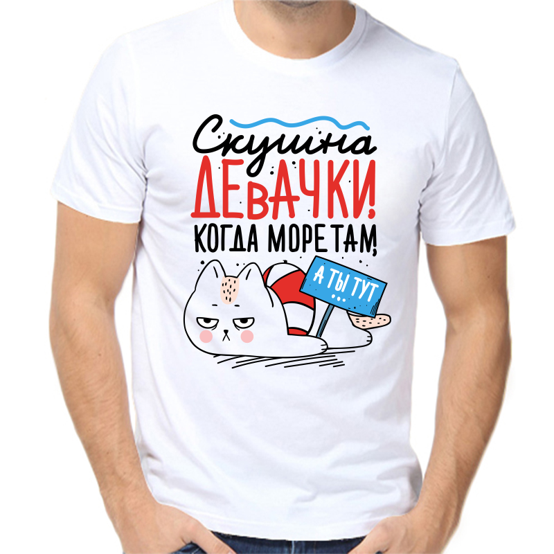 Футболка мужская белая скушна девочки когда море там а ты тут р-р 48 990 ₽