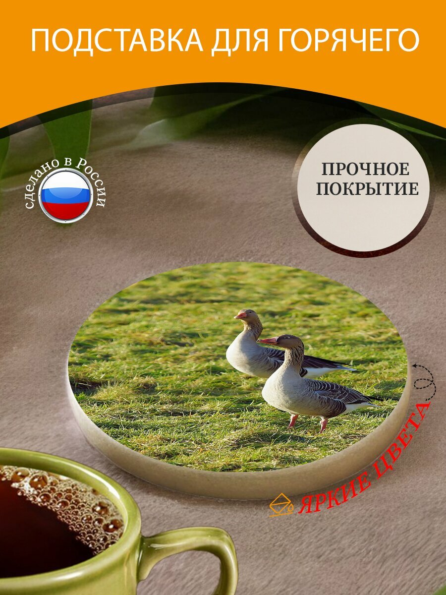 Подставка под горячее "Гуси, луг, померанские гуси" 10 см. из блого мрамора информация: