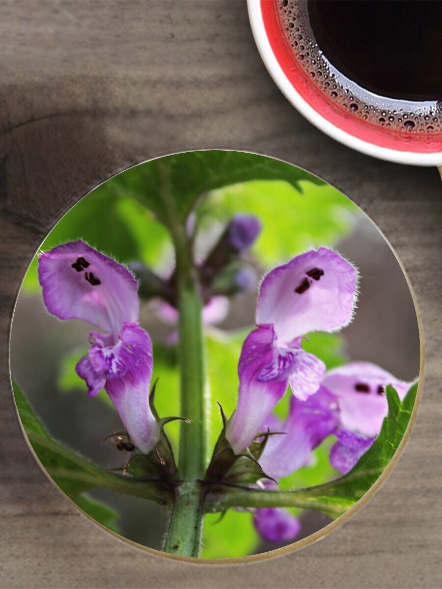 Подставка под горячее "Крапива, цветок крапивы, дикорастущее растение" 10 см. из блого мрамора информация: